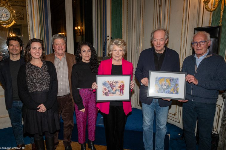 Le 6 décembre dernier, Viviane Reding, les frères Dardenne et l’association Tournesol Artistes à l’hôpital ont reçu dans les locaux de la SACD le prix de la diversité culturelle 2023.